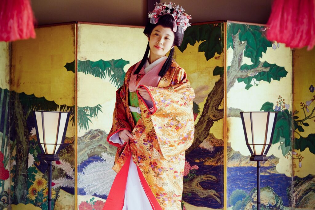 時代劇で見たあのキャラクターも、京都らしい舞妓も、なりたい姿に変身できる。お殿様、新選組隊⼠、花魁、芸者、あなたの好みに合わせて幅広く対応。映画村の登場人物になりきって道を歩けば、あなたも300年前の物語の主人公に。シャッターを切れば、そこは江戸時代。