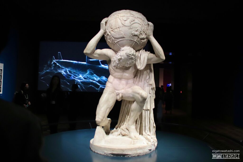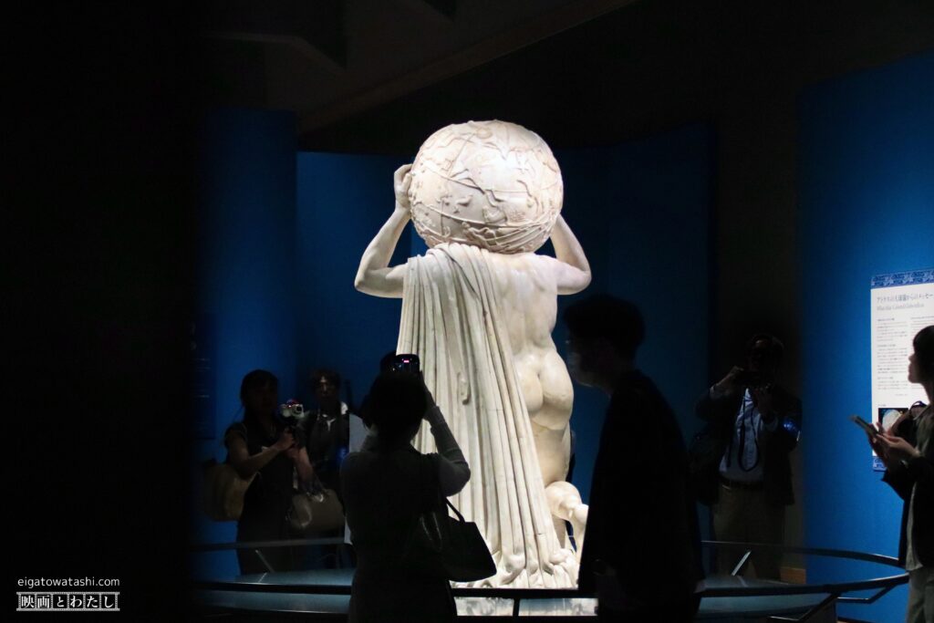 古代彫刻の最高傑作と称される《ファルネーゼのアトラス》は、重い天球を抱えるギリシア神話の巨神アトラスを象り、その天球に精緻に刻まれた星座や黄道十二宮とともに、古代彫刻の真髄を伝える極めて希少な作品です。