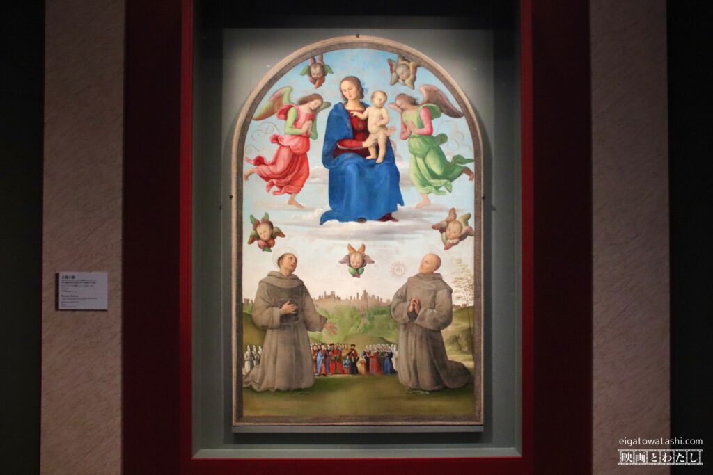 深い信仰心と精神性、また当時のペルージャの街並みが細かな部分まで見事に再現されており、神への祈りが現実の人間社会のなかに息づいていたことを物語る貴重な作品です。