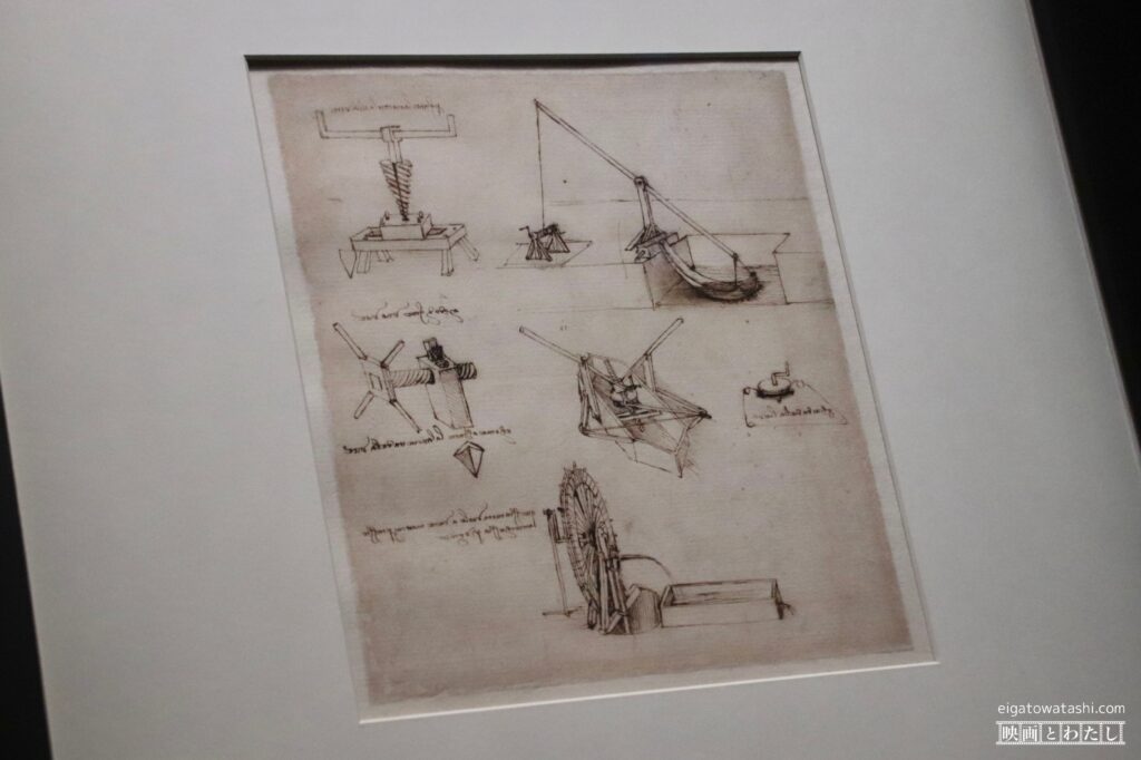 本展では、水の都・大阪にちなみ、水に関連する作品を厳選して展示。イタリア館に展示されていた作品とは異なり、《水を汲み上げ、ネジを切る装置》と《巻き上げ機と油圧ポンプ》の2点が日本初公開となります。