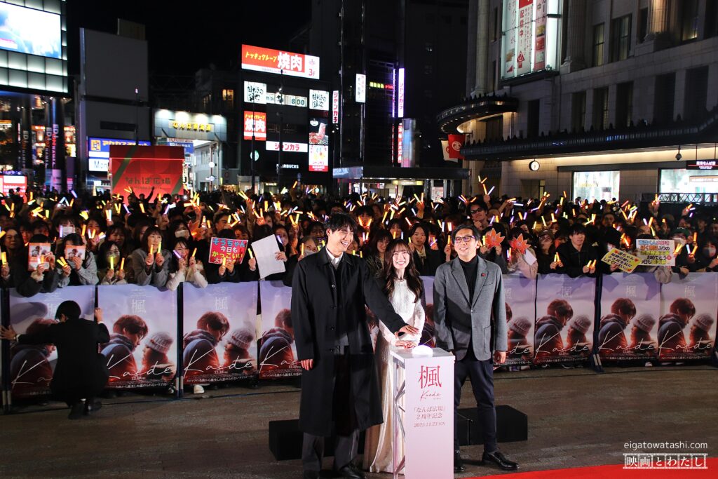 11月23日(日)、再編されて2周年を迎える「なんば広場」(大阪市中央区)にて、W主演をつとめる福士蒼汰さん、福原遥さん、そして本作のメガホンをとった行定勲監督によるライトアップイベントがサプライズで開催されました。本記事では、イベントの模様の一部をお届けします。