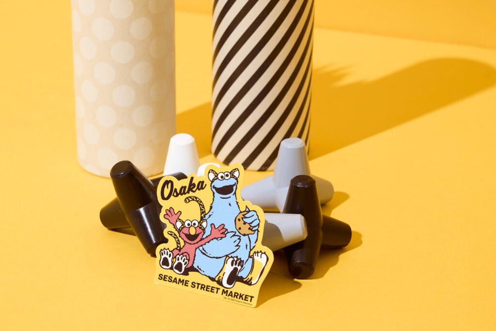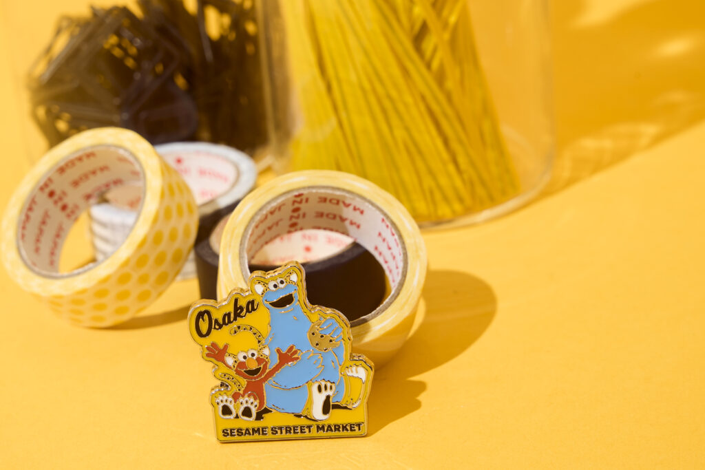 トラのコスチュームに身をまとったエルモとクッキーモンスターの姿が愛らしいデザイン。“OSAKA”の文字入りで、ピンズはバッグやポーチ、帽子や洋服などのワンポイントに、ステッカーはパソコンやノートに貼ったり、スマホケースに挟んだりと幅広い用途で活躍します。お土産にもぴったりなアイテムです。