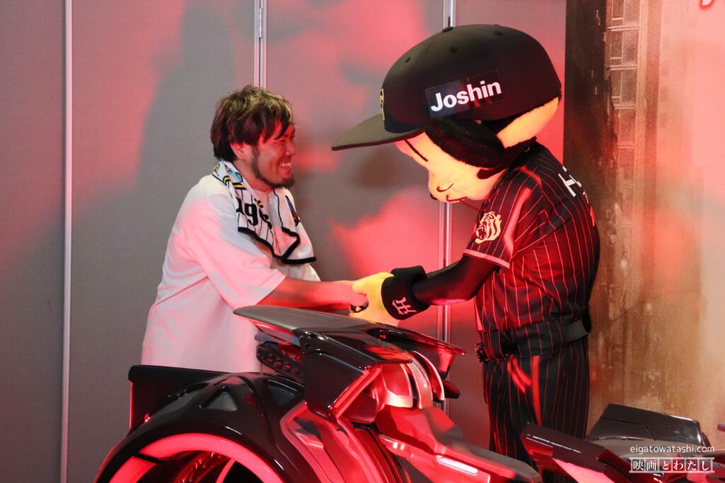 その後の記念撮影会では、劇場ロビーでイベントを見守っていた来場者と熱い握手をかわしながら、撮影を楽しんだ“トロッキー”。29分間限定の特別なイベントは、映画の公開とクライマックスシリーズへの期待感に包まれながら幕を閉じました。
